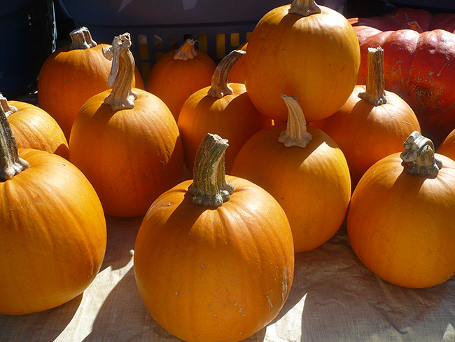 Sitting side by side with the hefty pumpkins used for decorating, are the smaller, smoother sugar pie or pie pumpkins. This heirloom variety is thought to have originated here in the eastern United States, and is a smaller cultivar of the Connecticut field pumpkin, one of the oldest pumpkin varieties in existence.