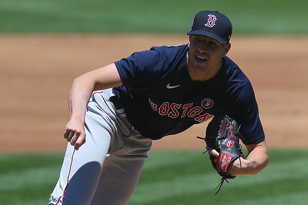 Boston’s Nick Pivetta follows thru on a pitch during the Red Sox 1-0 win over the A’s Sunday afternoon.
