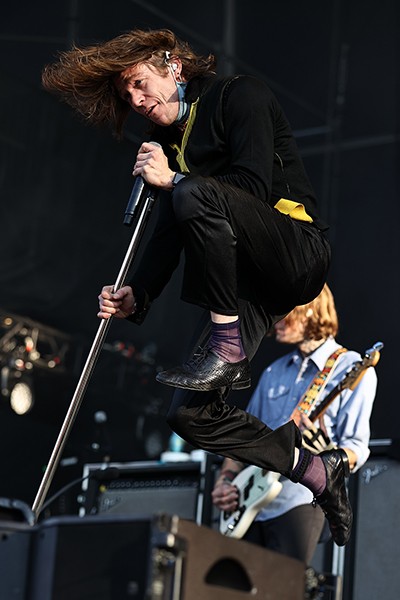 Cage the Elephant lead singer Matt Shultz gets some air during the bands performance Sunday evening at BottleRock in Napa.